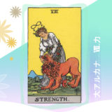 『教皇』は男性性の精神的側面を表し、『女教皇』と対になっています。教皇も2本の柱の間に座っていて、昼と夜の二つの相反するもののバランスをとっています。三重に重なった冠は『三重冠』といい、身体、心、精神を表し身体的、感情的、精神的な領域を理解していることを示します。